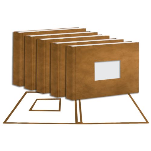 8.5" x 11" Tan Suede Landscape Fastback Hardcovers - "B" Spine Size with Window (25 Books)