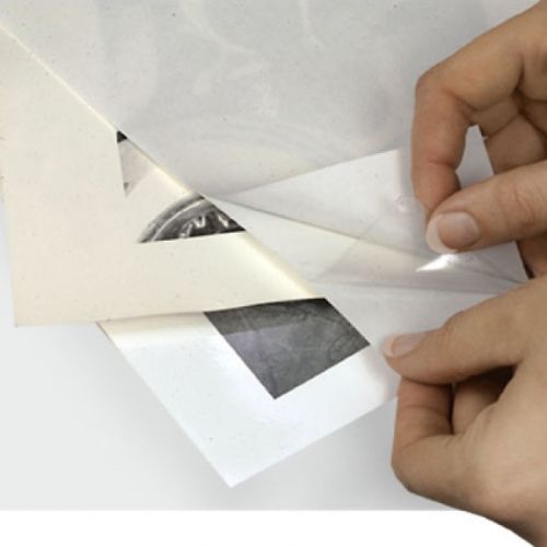 General purpose pressure sensitive mounting sheets are a popular solution for anyone who doesn't want to invest in expensive equipment to achieve high-quality mounting. The two sided adhesive sheets are sticky to the touch and feature easy-to-remove silicon liners on both sides, so all you have to do is peel the liners one at a time and place the adhesive on your items. Also called cold mounting adhesive, this pH neutral adhesive won't yellow your items. It is a 3 mil thick acrylic adhesive that features a premium make-up to work well for both indoor and outdoor applications. Incredibly strong, this permanent adhesive is not repositionable, and will hold tight once applied. Because these adhesive sheets don't require any heat or machines to work, you can simply peel one liner and place it to your mounting board, then peel the other liner and apply your print. It is fast and simple enough to be done by anyone. You can buy pressure sensitive mounting adhesive sheets online at Binding101 in several sizes from 8 ½" x 11" up to 32" x 40". For larger applications you can simply use multiple sheets.