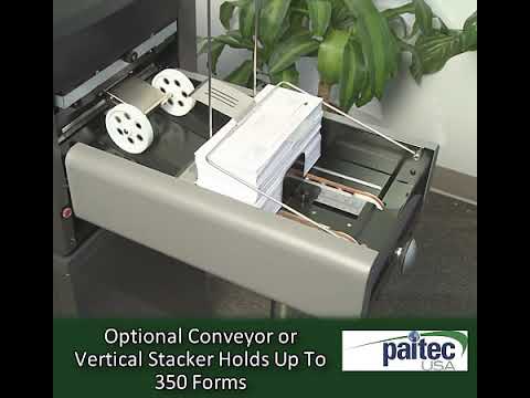 If you are looking for the most advanced desktop pressure sealer and folder on the market today, at a price that can fit the budget of any mail room and print shop, then look no further than the Paitec USA MX11000. This high volume pressure sealing machine produces folded and sealed mail pieces with cut-sheet pressure seal forms at a rate of 11,000 sheets per hour. The pressure-activated adhesive applied forms provide an instantly secure seal on all sides of the form, whether use a “C”, “V”, “Z” or “Double” fold. The MX11000 is equipped with a large capacity elevator infeed table that can hold 700 pressure seal forms. Plus, it has an adjustable speed that allows the operator to work at a comfortable speed and quiet environment.