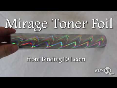 Mirage holographic foil fusing rolls add a beautiful, iridescent-like finish to your printed documents, invitations, business cards, stickers, art prints, or anything else you want. We call this pattern "mirage" because it reminds us of the optical phenomenon of water on the road in hot environments. The backing (or underlay) of this foil is opaque silver, so it completely covers your printed design. These hologram toner reactive foils have a special adhesive on the back that sticks to dry toner¹, which is used in most copiers and some select laser printers (note: it does not work with wax-based inks). Ready to add holographic brilliance to your printed pages? Buy silver mirage hologram foil fusing rolls online from Binding101 today.